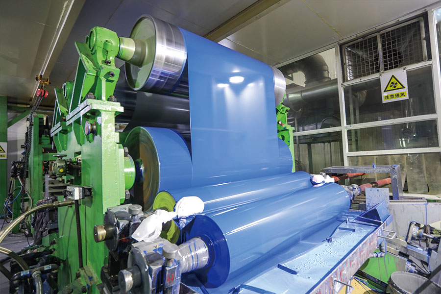 We have established four 150 m/min color-coated high-end automation production lines. In pressure testing of roller, timely adjusted first coat and top coat dual-roller coating head can be designed with dual-coating and dual-drying process. In online thickness testing of primer and finish paint wet film, top coat can be finished by U-type dual-coating head machine. Roller is amounted in online scraper and paint preparation constant temperature system. Protective film laminating machine is installed on online stroboscope examining table. Outlet section is capable of automatic coil separation, threading, taking and discharging. Coiling machine is configured with EPC system, so as to realize aligned coiling of finished steel coil, and coiling helper and seamless coiling block, so as to avoid indentation of finished coil. Coated steel sheet, which is light, beautiful and highly resistant to corrosion and can be directly processed, refers to a brand new raw material for building, shipbuilding, vehicle manufacturing, furniture and electrical industries and has good effect on substitution of steel for wood, high-efficiency construction, energy saving and pollution control. With process speed at 150 m/min, we can produce 120,000 t products on a yearly basis, whose width is within 914~1,250 mm and thickness is within 0.2~1.2 mm.