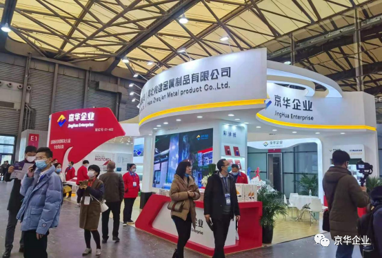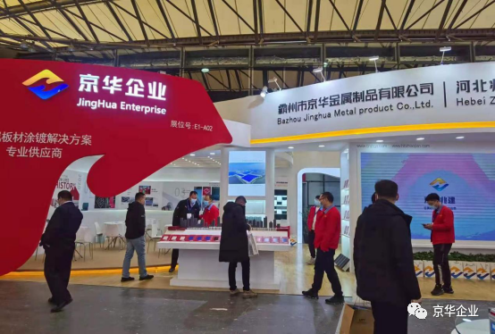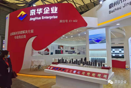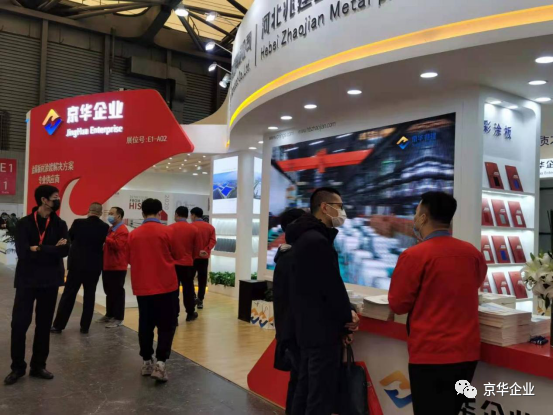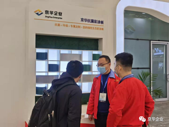 展覽會上各界人士紛至沓來,京華兆建作為金屬板材涂鍍解決方案專業供應商,在展位上部署了專業的工作人員,為來往人員進行耐心詳盡地講解,并展示高端彩涂板系列產品樣板。京華兆建的生產產品涵蓋精品冷軋板、熱鍍鋅板、熱鍍鋁鋅板、高強結構鋼板、建筑彩涂板、京華精品板、高端彩涂板、醫院用抗菌彩涂板、畜牧業用彩涂板、凈化板、家電用彩涂板等多個領域。展位E1-A02上包括且不僅限于氟碳彩涂板、抗菌彩涂板、高耐候彩涂板等擁有科技專利的高端彩涂板呈現。
