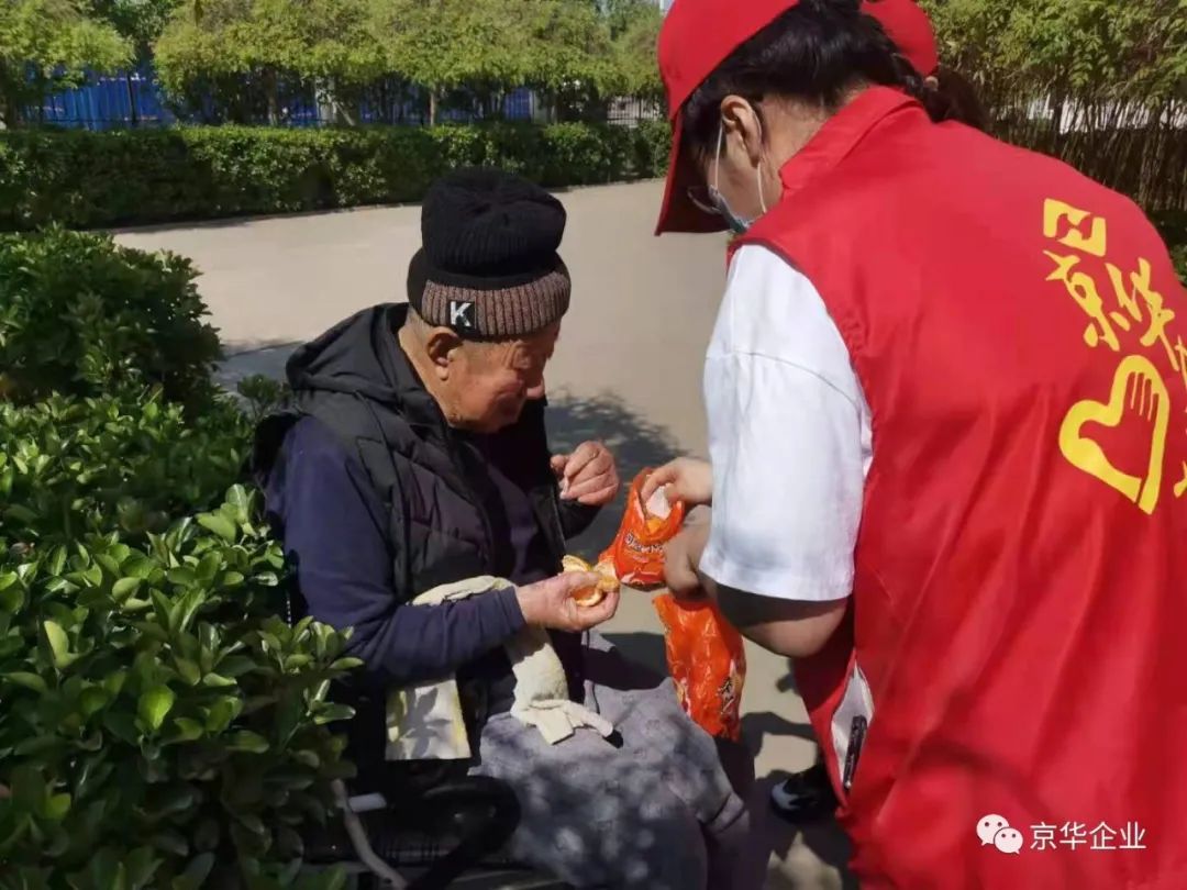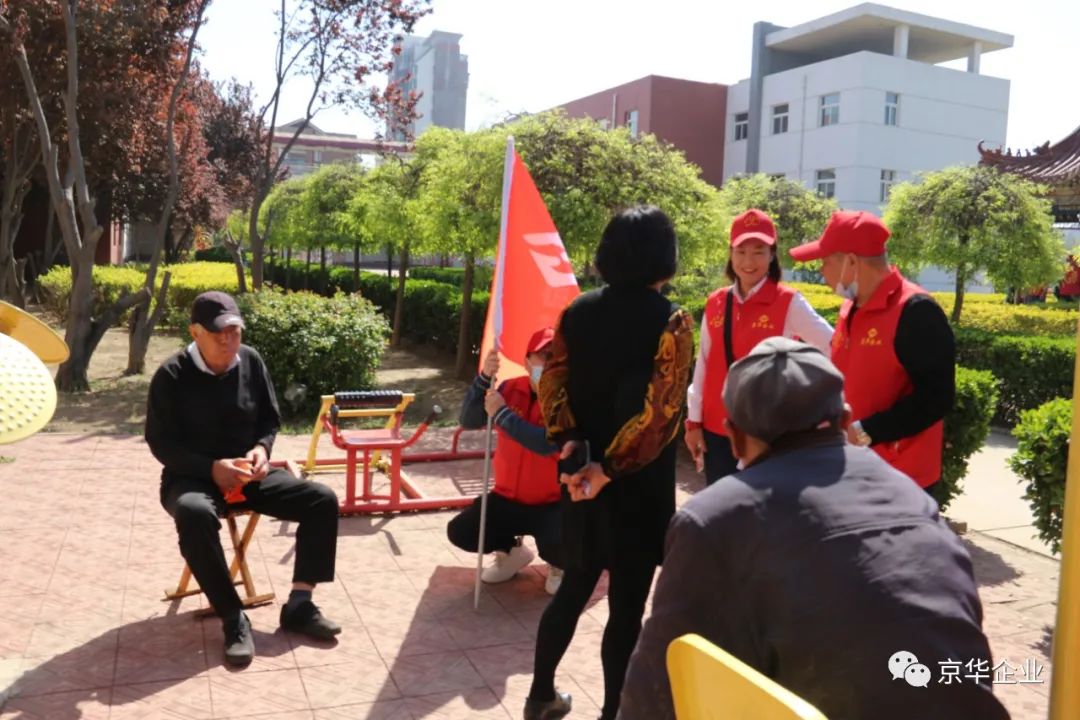 “誰言寸草心,報得三春暉”,為弘揚中華民族尊老、敬老的傳統美德,在中國共產黨建黨100周年來臨之際,為增強企業社會責任感,充分發揮黨員干部職工先鋒模范作用,由京華企業黨支部發起成立了“愛心志愿者團隊”,秉承我團隊“不忘初心,牢記使命,奉獻社會”的宗旨,于2021年4月18日,由該團隊18名愛心志愿者組成的第一支小分隊走進了勝芳鎮敬老院,以下是活動中的剪影.......