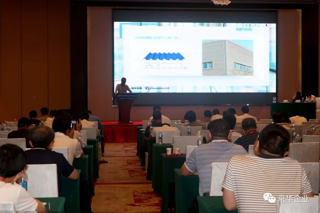 京華兆建應邀參加此次會議,在“碳達峰、碳中和”目標背景下,全面助力提高鋼結構建筑質量、技術與應用水平并結合會議主題推出《鋼構圍護系統的彩鋼解決方案》演講課題。同時,京華兆建對于鋅鋁鎂鍍層板、京華彩涂板以及Eternovo恒新功能性彩涂板的介紹也得到了現場參會企業的高度關注與肯定。