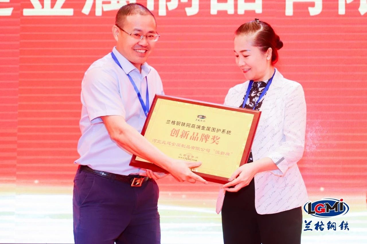 在“蘭格鋼鐵網高端金屬圍護系統原料機械領軍企業”頒獎典禮上,恒新系列產品榮獲“創新品牌獎”。中國鋼結構協會專家委員會副主任、中國鋼結構協會圍護系統分會榮譽理事長、中國建筑防水協會金屬屋面技術分會榮譽會長吳耀華,廈門全新彩鋼機械有限公司董事長王少輝,高級工程師王保強等領導為獲獎企業頒獎。