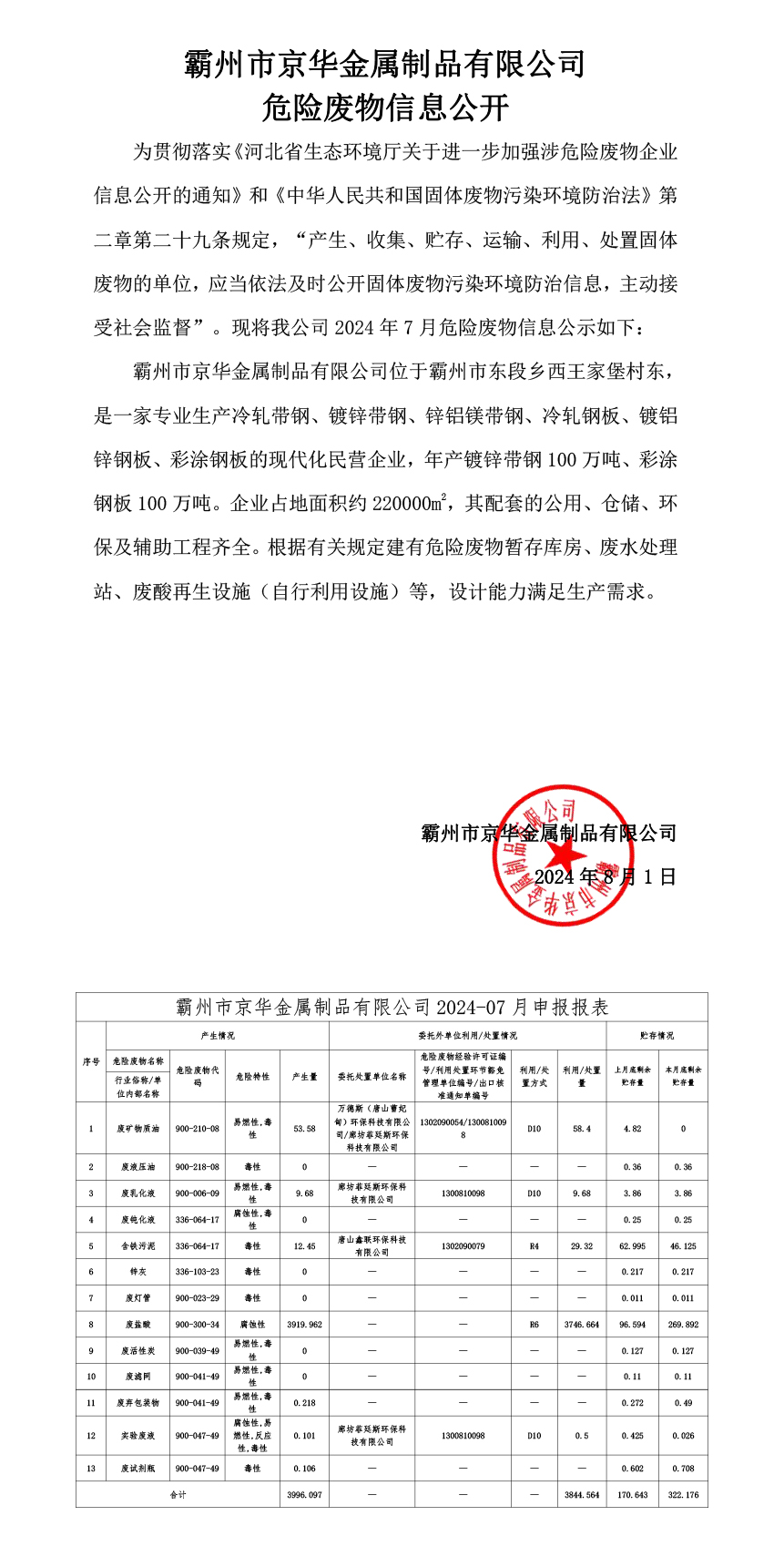 下一篇:24年8月危險廢物信息公開-霸州市京華金屬制品有限公司